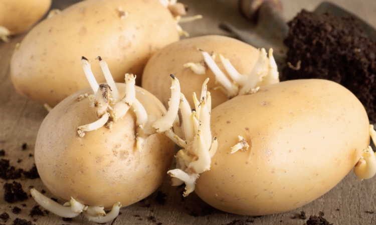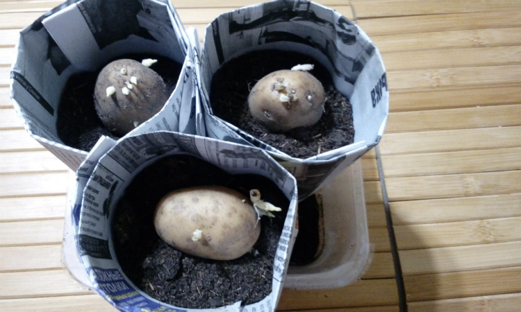 Для высадки возьмем ультраранние сорта семенного картофеля (это «Алена», «Ариэль» и многие другие сорта) и поставим на две недели в теплое место. За это время ростки успеют развиться. Теперь делаем из газет плотные стаканчики, наполняем рыхлым субстратом и переносим картофель в них.